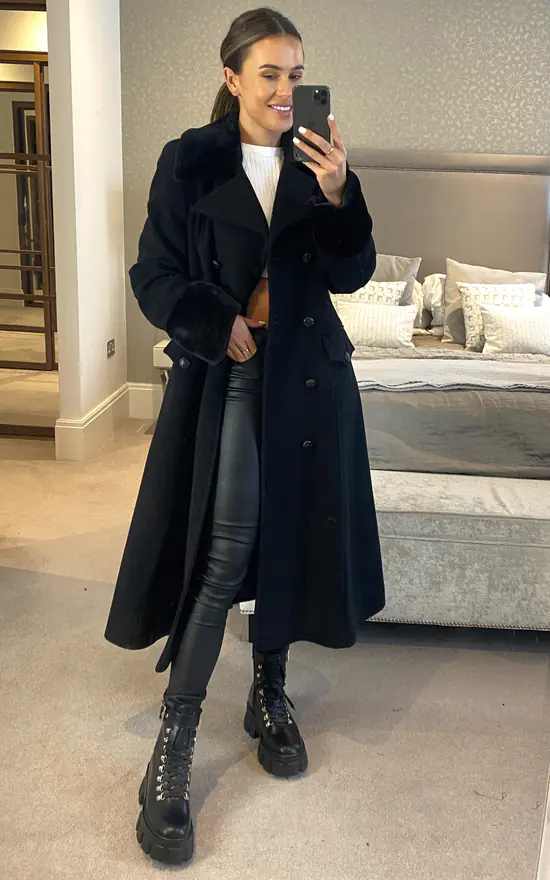 A stunning full length military styled coat with Faux Fur Top Collar and cuffs, produced in the finest of fabrics. This coat is made in England and is hand made to the highest specifications. This coat is a classic and will last the test of time.