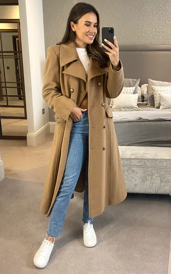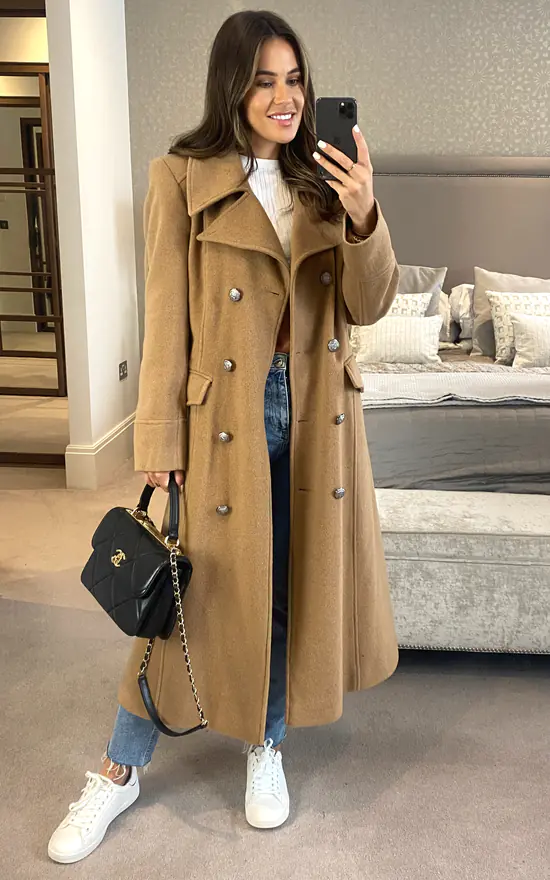 A stunning full length military styled coat produced in the finest of fabrics. This coat is made in England and is hand made to the highest specifications. This coat is a classic and will last the test of time. Camel
