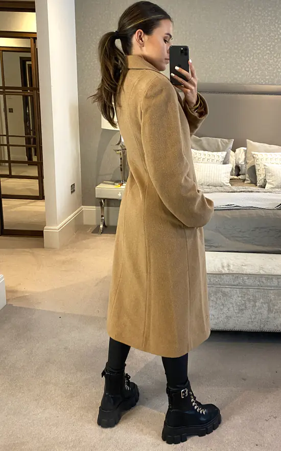 The Seasons Favorite Coat. You can Wear it For Work or For the Special Occasion. it is Made From a Luxurious Wool and Cashmere Blend Fabric – A Must For The Season. Camel