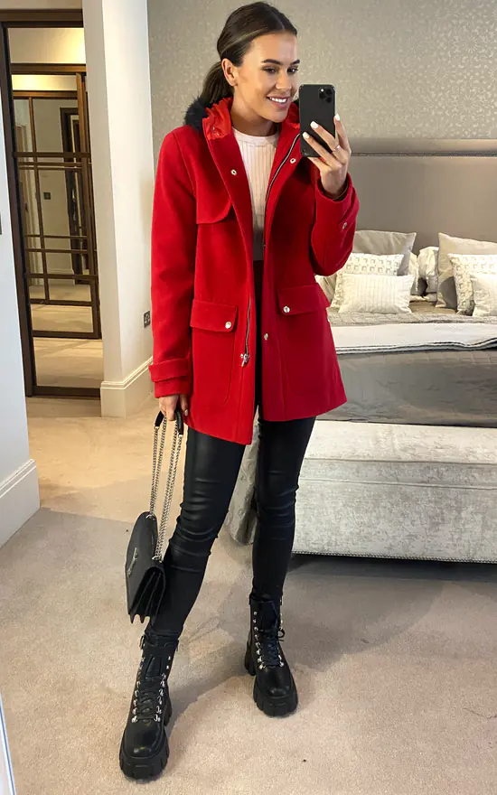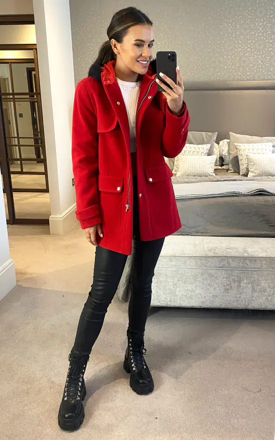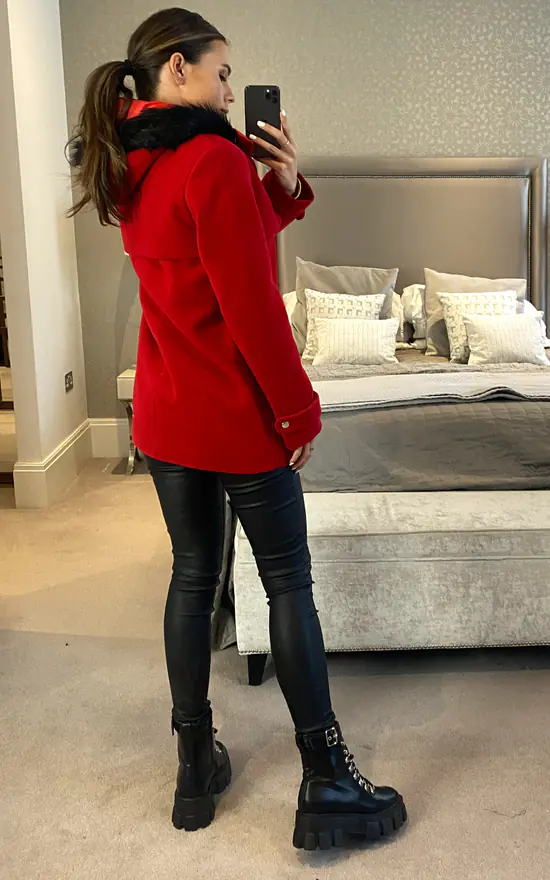 Duffle Coats are Back !!! This Duffle is An Updated Fashionable Version That Sets off Any Outfit. It is Great for Casual Dressing and it also Livens up your Smart Outfits. Red
