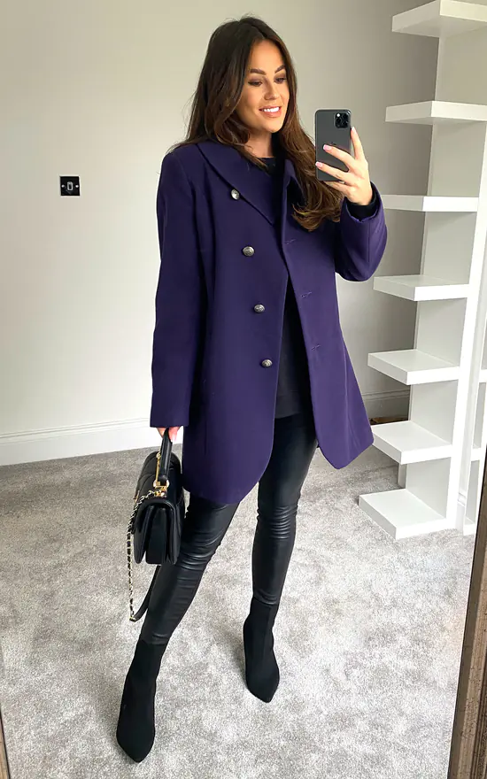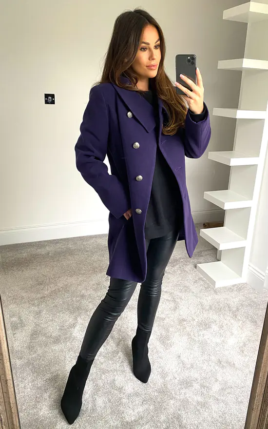 Purple Is The Colour Of The Season, And This Is The Perfect Coat For This Season. This Is A Very Attractive Coat With Asymmetric Fastening Metal Buttons.Wear This Coats Casual With Jeans Or Over Your new Outfit.