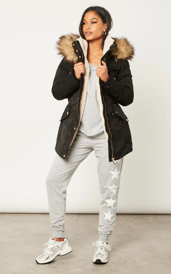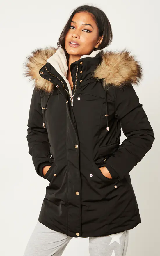 Exclusively by Blue Vanilla. Keep cosy and warm with this coat! This faux fur trimmed parka will make sure to keep you looking on trend and keep you warm for this winter! Featuring double pocket on both sides, longline design and oversize fit for style and comfort. Wear over a jersey top, jeans and compliment with boots to complete your chic winter outfit!