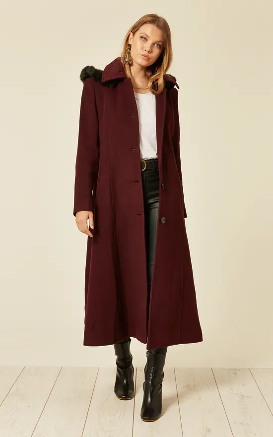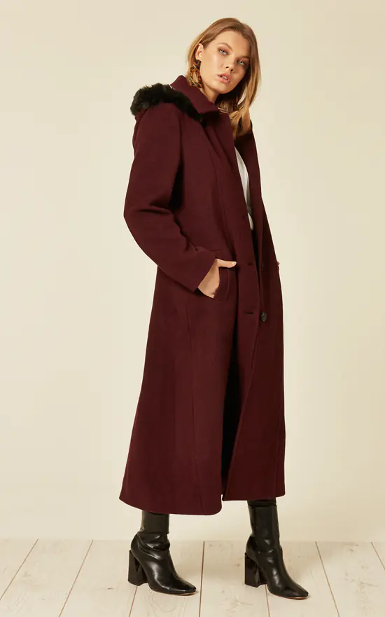 Women’s Faux Fur Trim Single Breasted Winter Coat
