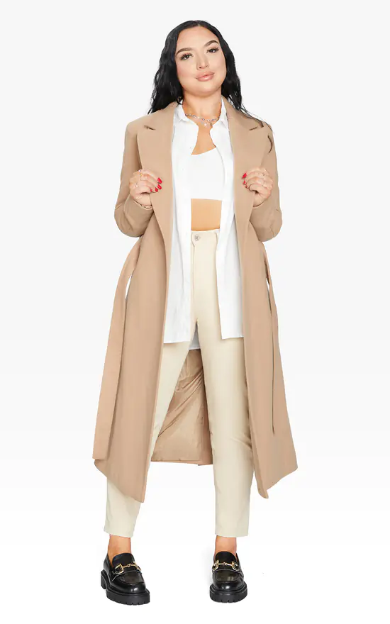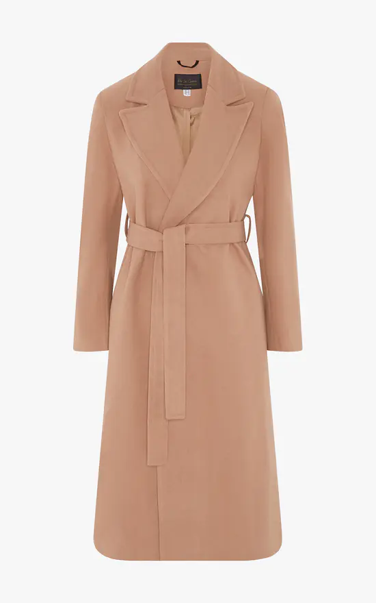The duster coat has become a winter wardrobe stable as of late. De La Creme release their latest version of this icon. Featuring pointed notch lapels, tie belt at waist and knee length design. Made of luxurious Italian wool and cashmere fabric, whilst being expertly crafted in England. This fusion brings you the best of both qualities to provide you premium british outerwear. Fully lined inside to finish. In Camel Colour.