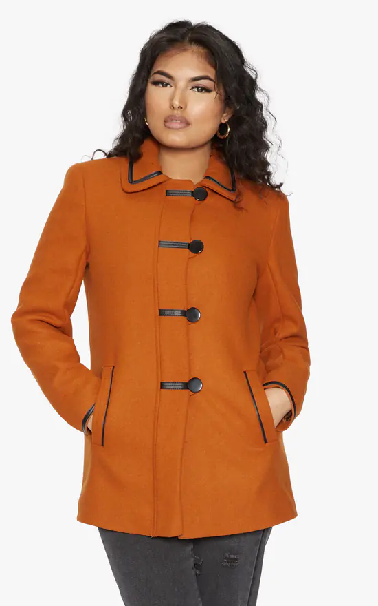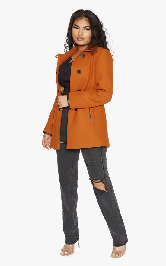Crafted from smooth, supple wool, this edgy contrast trim coat is a luxurious take on a cool-girl essential. Wear it under a dress or pair with jeans and heels for the casual yet elegant look.