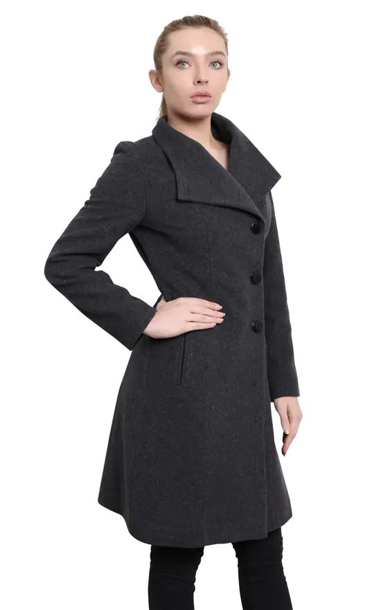 Crafted from a wool cashmere blend, and cut to a tailored shape . Featuring optional funnel neck detail , this coat adds a touch of sophistication to your casual wardrobe. It features a contrast button fastening, front pockets and finishes below the hips for good coverage. Perfectly versatile, pair with weekend or office attire. Individually crafted in England
