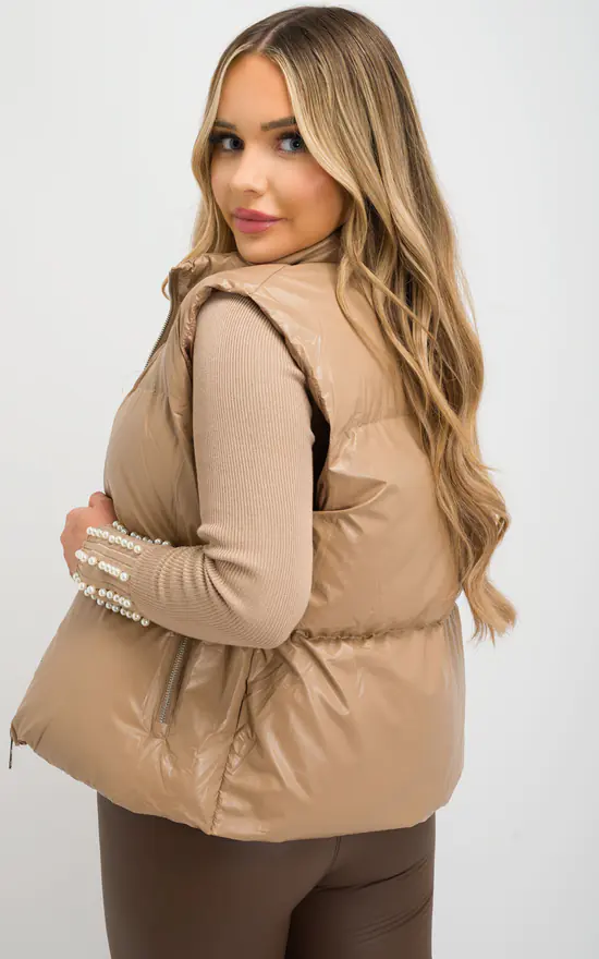 Get your new season look on point with this Faux Leather Padded Gilet. Style this gilet over one of our comfy Lounge Sets & chunky boots to complete the look.