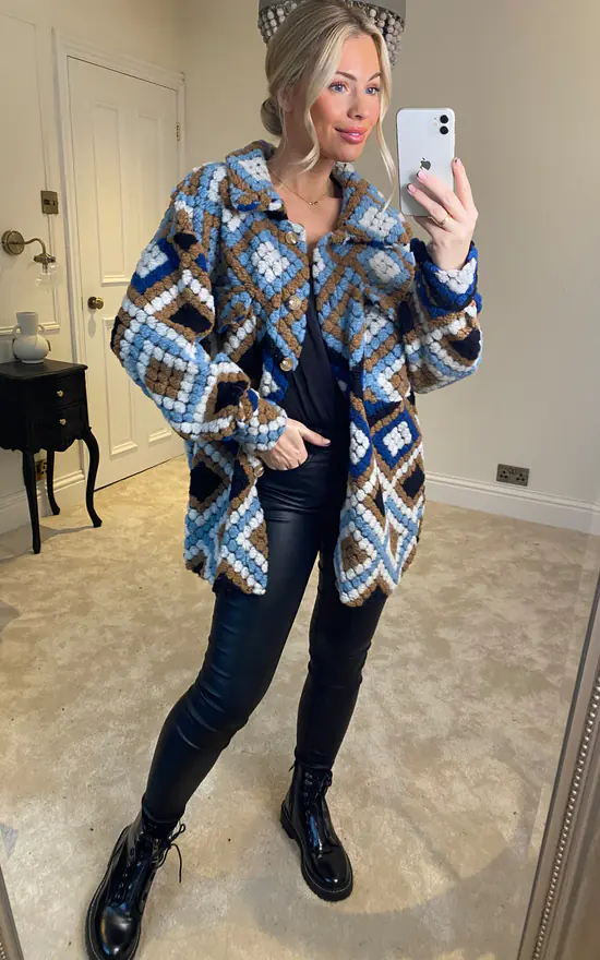 Add this stylish Oversized Long Sleeves Wool Coat with Pocket Details in Blue and Brown to your winter wardrobe. The perfect throw-over for chilly days with the added bonus of a pocket details!