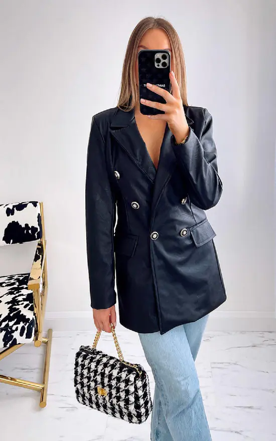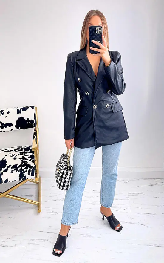 Keep things sleek and stylish with the Imogen Faux Leather blazers. Made from faux leather material, it’s a quirky way to style up your wardrobe for fall/winter in style! Pair this jacket with black jeans, boots and a chunky wool sweater and you’re set to walk out in style.
