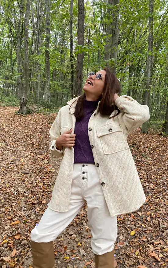 This is perfect for everyday wearing. It is comfortable and can be worn as jacket for slightly colder weathers. Standard size.