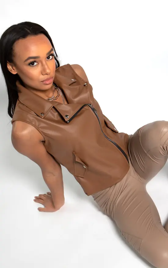 Add a little something to your OOTD with this faux leather gilet, we’re obsessed. Featuring a faux leather material, slim fit and a zipper fastening. Team over a cute jumper and jeans with chunky boots.