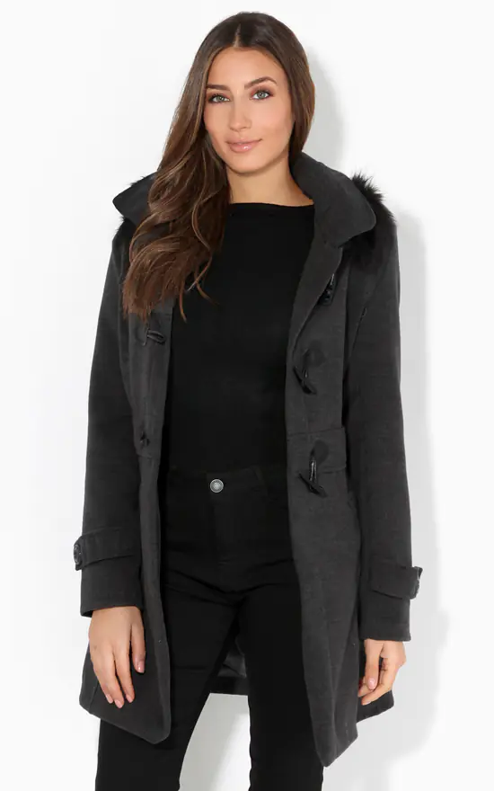 Faux fur trimmed detachable hood