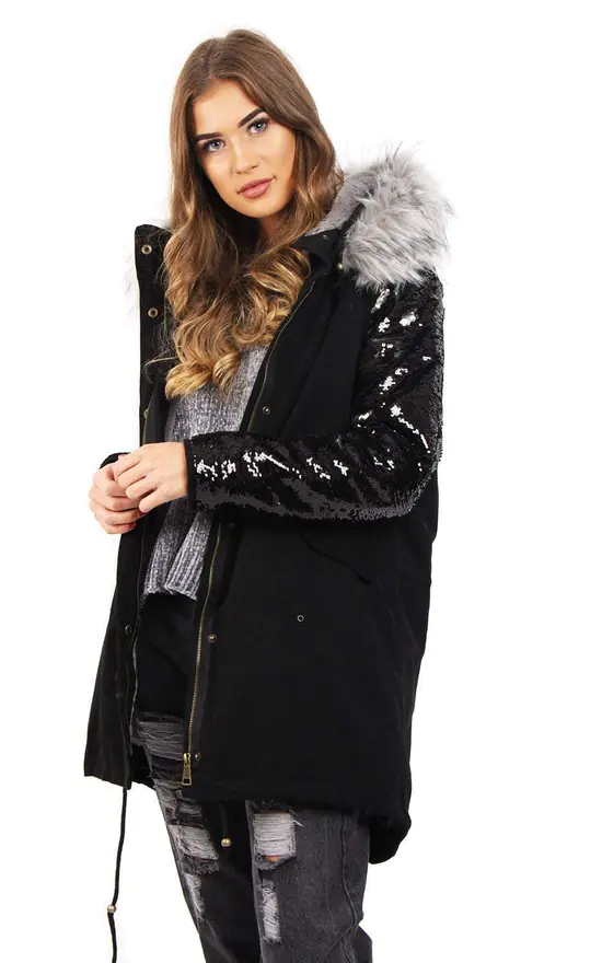 Two sided colour sequin sleeves in black/grey