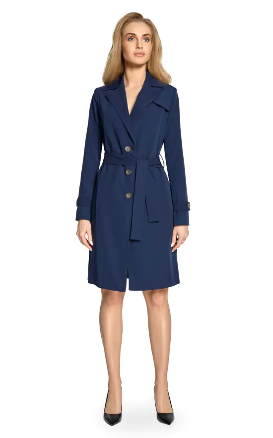 Classic single-breatested trench coat with belted cuffs, storm and gun flap and removable belt brings timeless polish to your every day style.