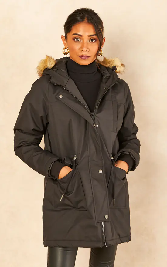 Stay cosy this winter in this fur hooded parka, this seasons must have.