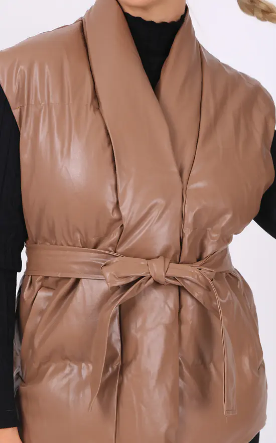 Our Brown Belted Leather Gilet is part of our newest Coats and Jackets collection. Featuring button fastening, two front pockets and a belt all finished with a padded leather look.