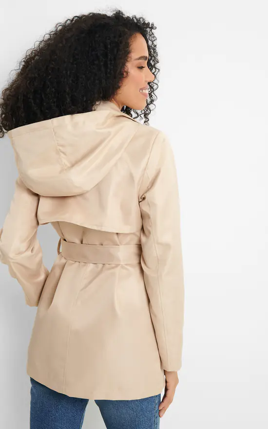 Complete any wardrobe with this classic stone trench coat from Threadbare. The coat features a hood, revere collar, side pockets, button and tie waist fastenings. This style is fuss-free and easy to style. Other colours available.