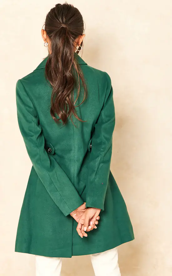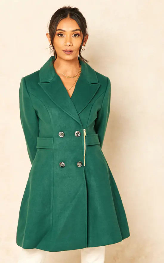 Perfect for layering over any outfit, this double breasted military coat with zip detail is smart, stylish, and comes in a stunning green. Unique zip detailing subtly draws attention to your waist.